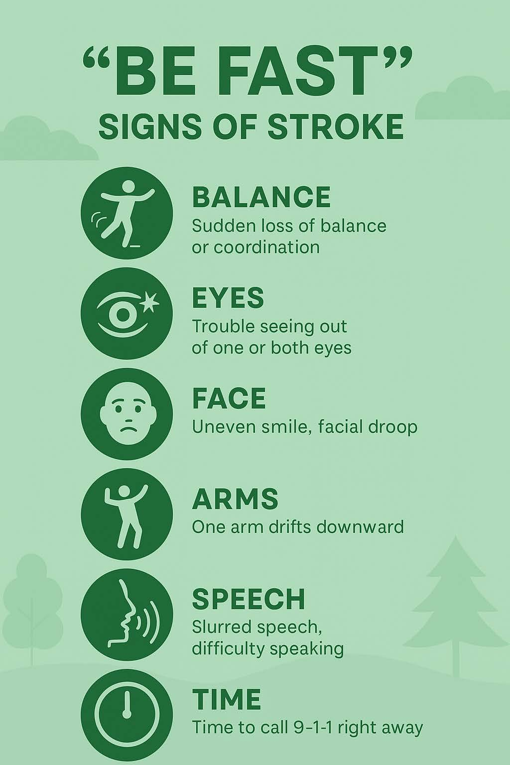 Recognizing the signs of a stroke quickly can save a life. This BE FAST guide makes it easy to remember the most important symptoms and what to look for. Use this poster as a quick-reference tool. It will help you act fast. Seek emergency medical care when every second matters.